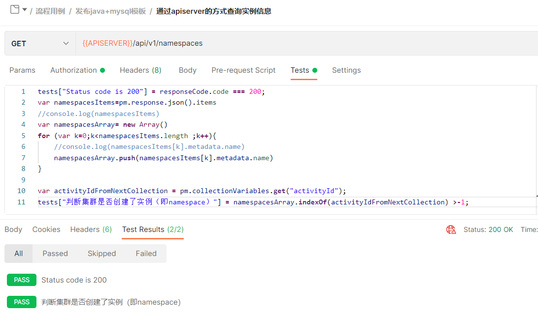 2、根据接口响应校验集群中实例包含的pod信息是否正确